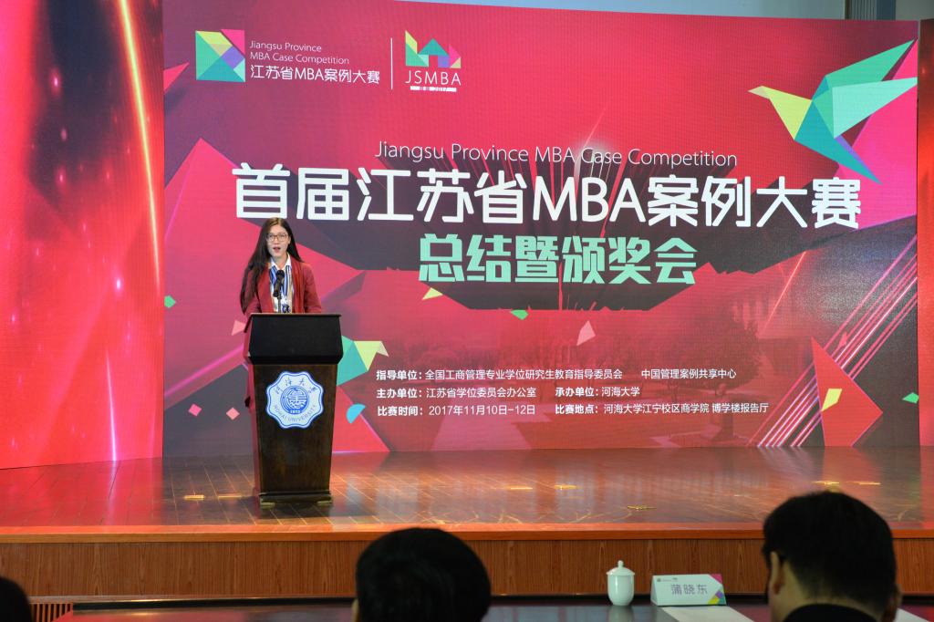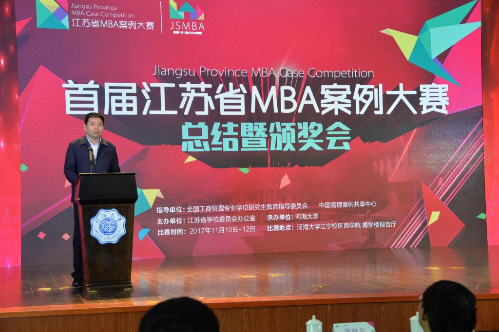 11月10日-12日,由全国工商管理硕士教学指导委员会和中国管理案例共享中心指导、江苏省学位委员会办公室主办的首届江苏省MBA案例大赛总决赛在河海大学举行。江苏省教育厅副厅长洪流、河海大学党委书记唐洪武、省学位委员会办公室主任杨树兵、中国管理案例共享中心常务副主任朱方伟、全国MBA教学指导委员会秘书处办公室主任王萍等领导亲临现场。本次总决赛共有来自全省16所高校、23支队伍晋级参加比赛。