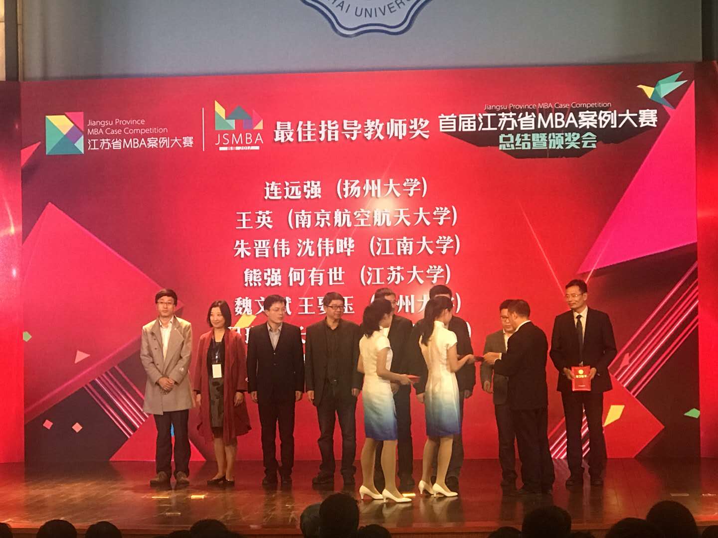 由我校研究生院和MBA教育中心报送的拈花湾禅意小镇团队荣获一等奖,太湖影视小镇团队荣获三等奖。指导老师朱晋伟教授、沈伟晔副教授荣获最佳指导老师奖,黄昱方教授、吴媛媛副教授荣获优秀指导老师奖。MBA2016级学员范亚玲、2017级学员孙嘉旭、李洁、王奕荣获最佳风采奖。无锡灵山文化旅游集团有限公司、江苏华莱坞投资发展有限公司荣获优秀案例企业奖。