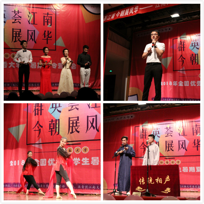 晚上,校研究生会为夏令营营员们准备了一场精彩的晚会。美妙的歌舞、开怀的相声、网红宝哥脱口秀,为炎炎夏日带来了无尽的欢乐,作为我校每年夏令营的保留节目,学长们科研之外的业余文化生活给营员们留下了深刻的印象。