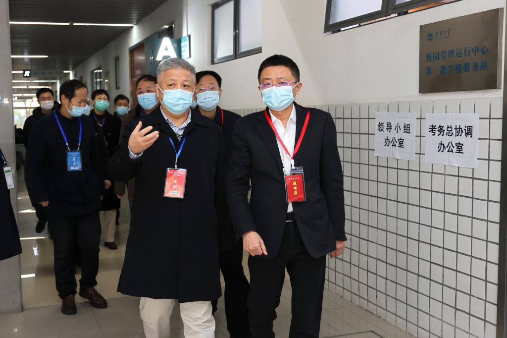 12月25日上午,无锡市副市长秦咏薪带领无锡市教育局等相关部门领导、江苏省教育考试院巡视员分别到达星空游戏免费入口考场开展巡视和指导工作,对考场及考务工作安排予以肯定,考点主考徐岩副校长和各副主考陪同巡视。