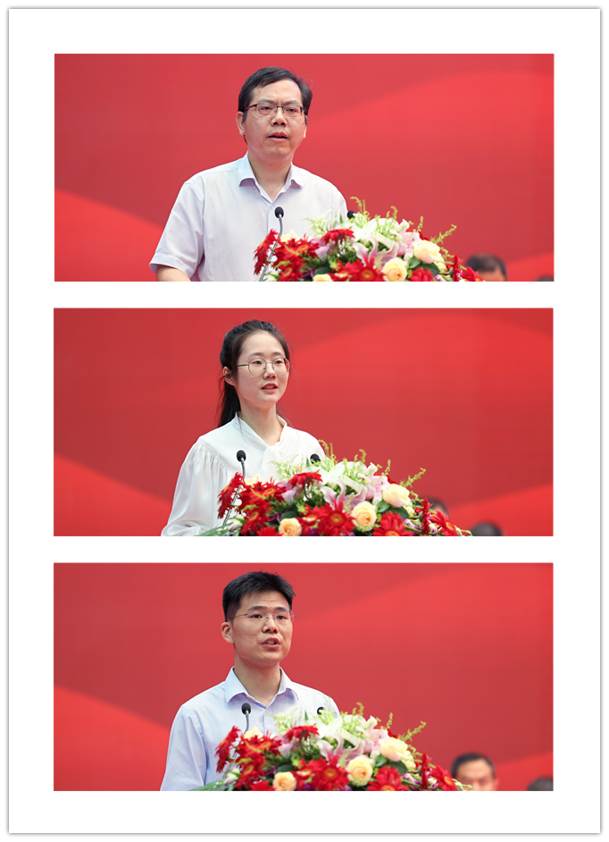 生物工程学院饶志明教授代表全体研究生导师发言,他期望每一位同学都能够面向国家重大战略或行业关键技术需求,树立远大的志向;加快从本科生阶段以课程学习为主的“知识获取”,向研究生阶段的发现问题、分析问题和解决问题 “主动探究”的转变。食品学院吕铃怡同学代表在校研究生发言,她号召江南学子始终做保持好奇、敢为人先的江南人;做立足前沿、脚踏实地的江南人;做心系家国、胸怀天下的江南人。人工智能与计算机学院张文杰同学代表研究生新生发言,他呼吁同学们要弘扬科学家精神,勇攀高峰、敢为人先,突破关键领域“卡脖子”的困境,以实际行动为建设科技强国贡献力量。