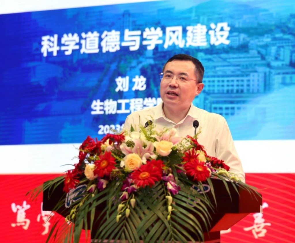 在随后进行的科学道德与学风建设宣讲报告会上,生物工程学院院长、博士生导师刘龙结合理论和实际案例,从加强学术道德建设的重要性、学术不端行为的界定、学术不端行为的危害以及如何避免学术不端等四个方面,系统阐述了科学道德与学风建设中的重要内容。最后勉励每一位研究生,做一个大气、大度、大方的“大”学者。