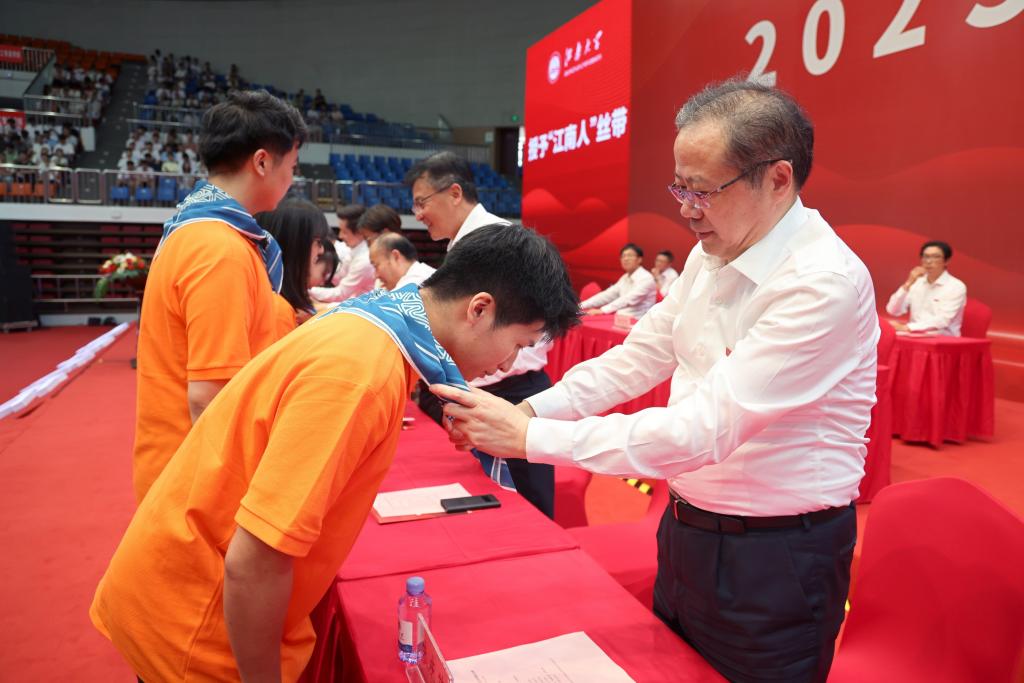 校党委书记朱庆葆为新生授予“江南人”丝带