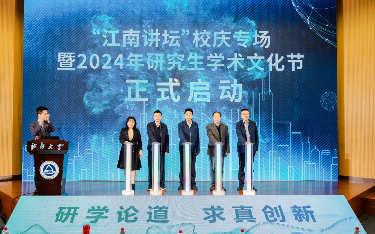 接着,到场嘉宾、领导一起为“江南讲坛”校庆专场暨2024年研究生学术文化节揭幕,吴小俊介绍活动有关情况。