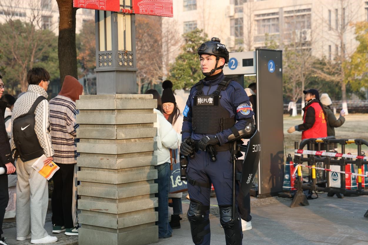 一是落实组织保障。为快速有效地处理考试期间突发事件,保障广大考生的切身利益,学校专门制定《星空游戏免费入口2025年全国硕士研究生入学考试突发事件应急处置预案》,遵循“安全第一、预防为主”的方针,对考场准备、监考组织、安全排查、考生入校等环节进行周密部署与安排,并于12月19日、20日进行了消防检查、考前现场模拟,逐一推进落实手机存取、考生安检、考场指引等各项措施,并备好应急处置方案。考试期间,考区周边严密管控,反复播放考场纪律要求。我校考点首次协调滨湖公安警力,协同保障考试期间考试安全,强化考前安全检查、考中考场巡察,形成震慑,严厉打击和有效防范了违规作弊行为,维护考试公平公正;协同市急救中心驻守医疗车,做到突发事项有备无患,确保考生平安研考。