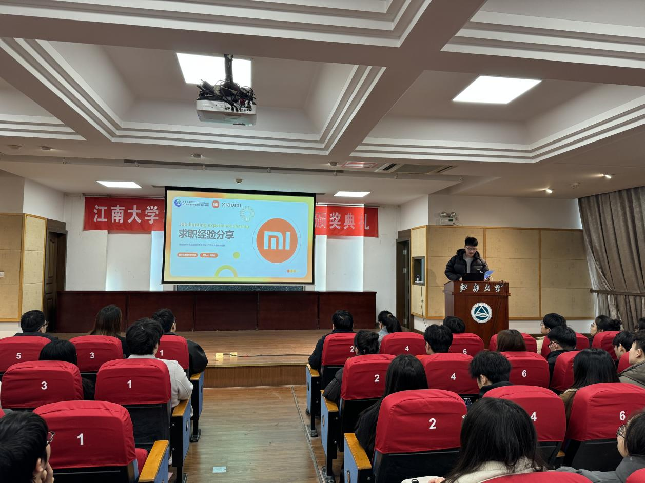 接着,人工智能与计算机学院黄凯成作为获得小米公司入职offer代表发言,他从个人简历、面试准备、技能训练等方面分享了自己的求职经验,并号召同学们找准人生定位,充分挖掘自己的潜力和才干,努力找到心仪工作。