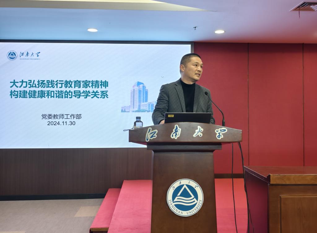 主题报告阶段,南京师范大学心理学院薛松副教授作了题为《研究生心理健康与导师支持:识别、理解与应对》的报告,结合自身研究生培养心得,从研究生主要心理困惑、导师的支持者角色与自我成长、导师助力学生心理健康、研究生心理问题与心理危机的识别与应对四个方面进行专业分享;上海交通大学安泰经济与管理学院罗俊教授作了题为《数智时代下商学院人才培养的一点心得体会》的报告,结合自己在研究思路、学术心态、教学设计、教学方法等方面的经历阐述了研究生导师如何做好科研指导与课程教学;星空游戏免费入口党委教师工作部部长张海峰作了题为《大力弘扬践行教育家精神,构建健康和谐的导学关系》的报告,以问题为导向,以相关文件为依据,运用近两年来的现实案例,倡导以中国特有的教育家精神引领研究生导师队伍高质量发展。