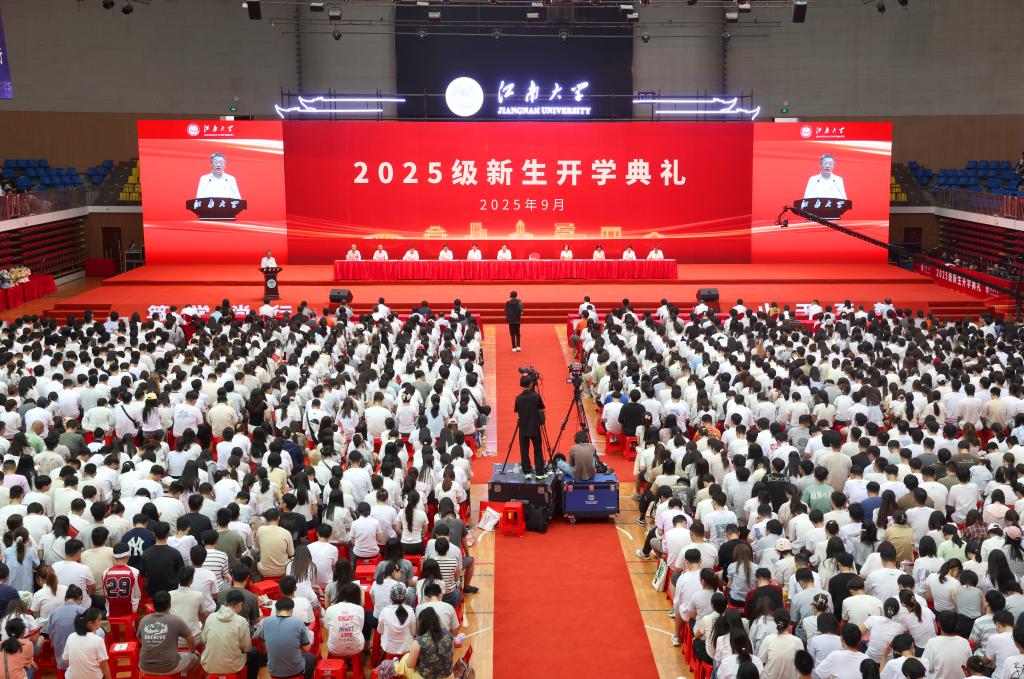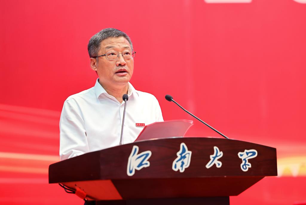 江苏省优秀博士学位论文指导教师、化学与材料工程教授马丕明作为研究生导师代表发言,他希望同学们善用学科交叉平台,打破学科壁垒,瞄准世界科技前沿,将个人理想融入国家战略发展。食品学院2023级博士研究生张智衡作为在校研究生代表发言,他号召江南学子做科学问题的求解者、技术难题的攻关者、产业发展的推动者和科技强国的追梦人。商学院2025级硕士研究生黄思媛作为研究生新生代表发言,她表示自己将在真学实干中夯实本领,和同学们共同谱写无愧于时代、无愧于国家的崭新篇章。