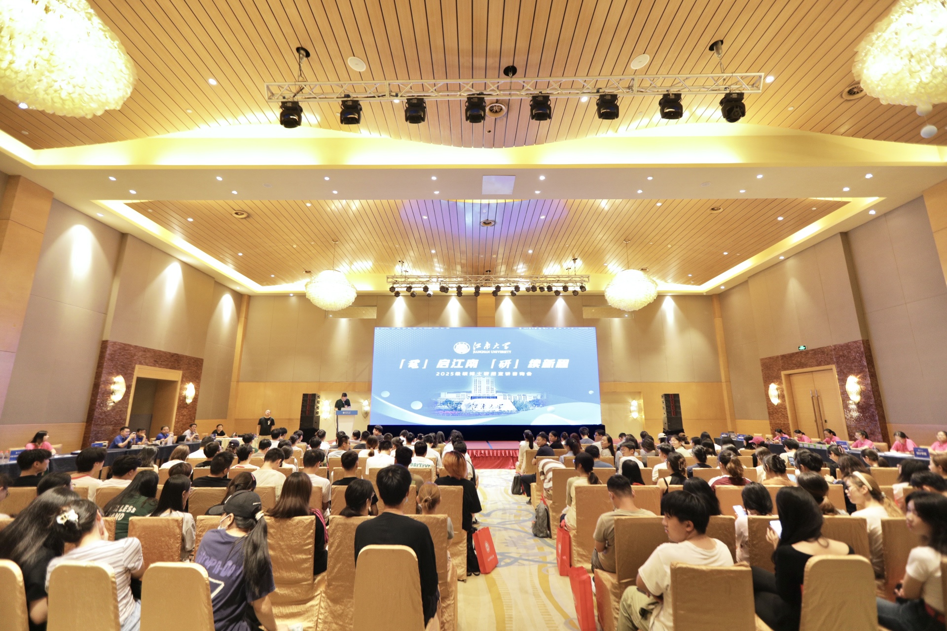 活动现场气氛热烈,怀揣梦想的青年才俊汇聚一堂,与江大“双向奔赴”,展开了一场关于未来与梦想的对话。招生宣讲会共有400余名学生参加,研究生院以及21个学院进行宣讲;提问环节约有十五位同学与老师进行互动,涉及奖助学金、就业、学科优势、专业发展、推免和统招政策等问题,所有问题均有相应老师当场进行解答。